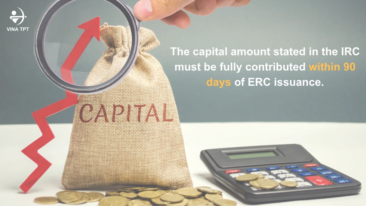 The capital amount stated in the IRC must be fully contributed within 90 days of ERC issuance. The bank opens a DICA to monitor inflows—ensuring SBV compliance.